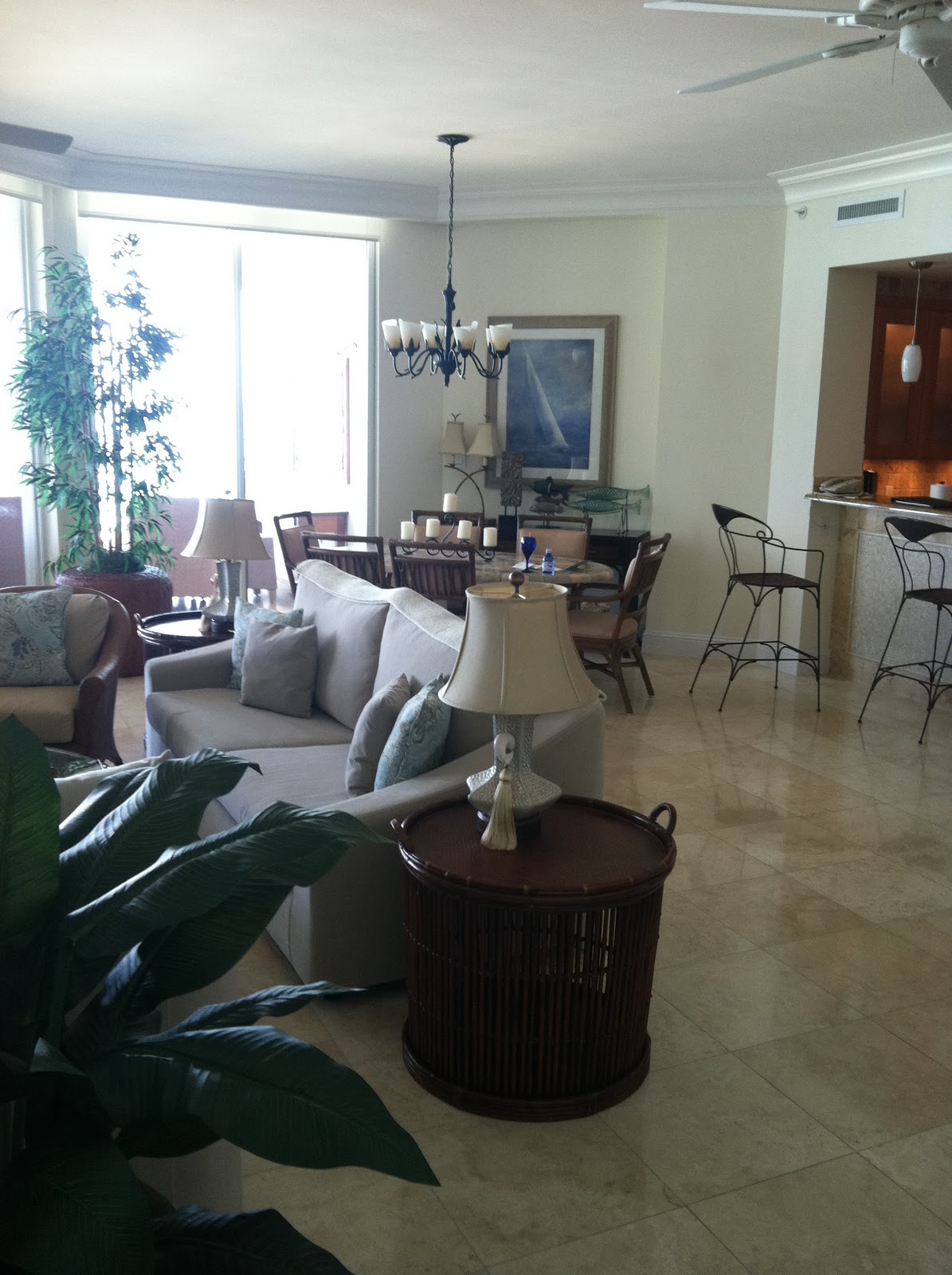 Seven Stars Resort is as beautiful in person as the photos from their website. Our amazing two-bedroom suite features a full kitchen, large living/dining area, a washer/dryer (how great to return home with clean clothes instead of a mountain of laundry?!) and a spacious balcony overlooking the ocean.