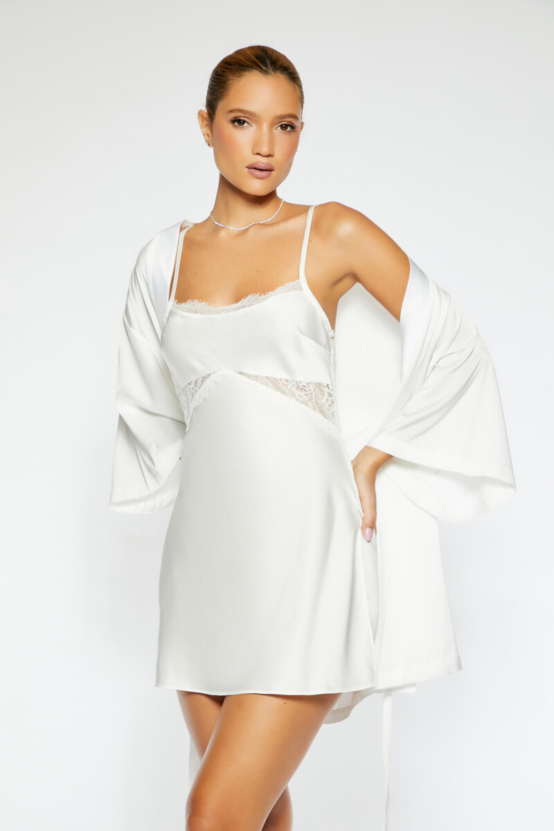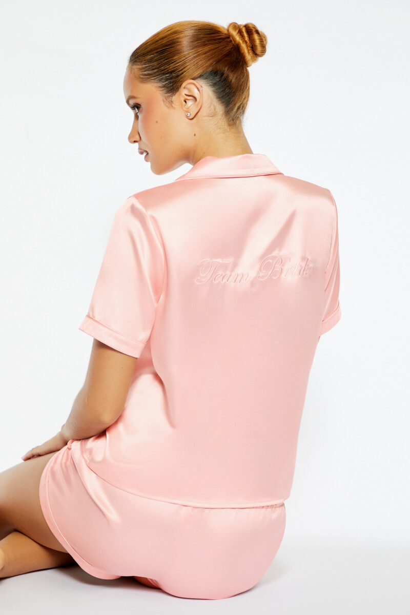 The bridal capsule collection has sleepwear, lingerie, and accessories, featuring pearl and rhinestone embellishments throughout for a touch of glam at an incredible value! Satin pajama sets and robes with “Bride” and “Team Bride” details on them and delicate slips make up the sleepwear selection, while corsets, bodysuits, and lace intimates add a touch of sexiness to the lingerie options.