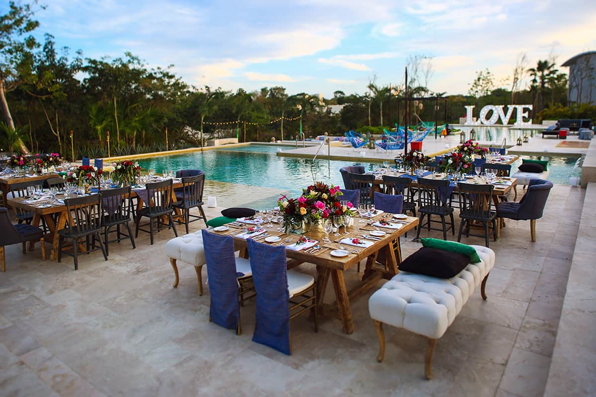 The most popular venues for weddings and events are next to the resort’s array of outdoor beach and lagoon pools. With twinkling lights, calm and picturesque pools, and stunning views out towards the beach or the lagoon, the pool areas are magical settings for weddings. The lagoon pool area can host up to 150 guests in banquet set-up with a dance floor and 250 guests for cocktails. The Beach Pool can comfortably host 80 guests for a banquet in front of the resort’s lively beachfront restaurant Olla Ceviche.