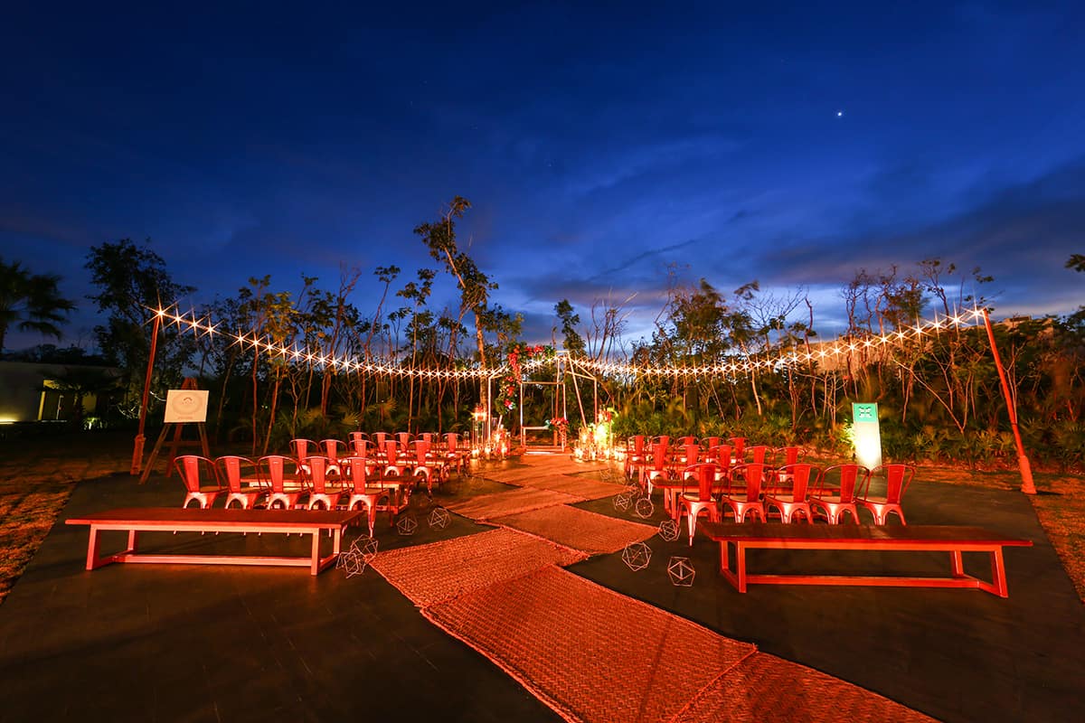 Andaz Mayakoba’s Studios Courtyard is an outdoor space ideal for smaller, private weddings and events. Surrounded by the property’s five studios, the courtyard has the capacity for up to 80 guests seated in banquet rounds of 10 or ceremonies for up to 100 guests. The space also has its own kitchen area.
