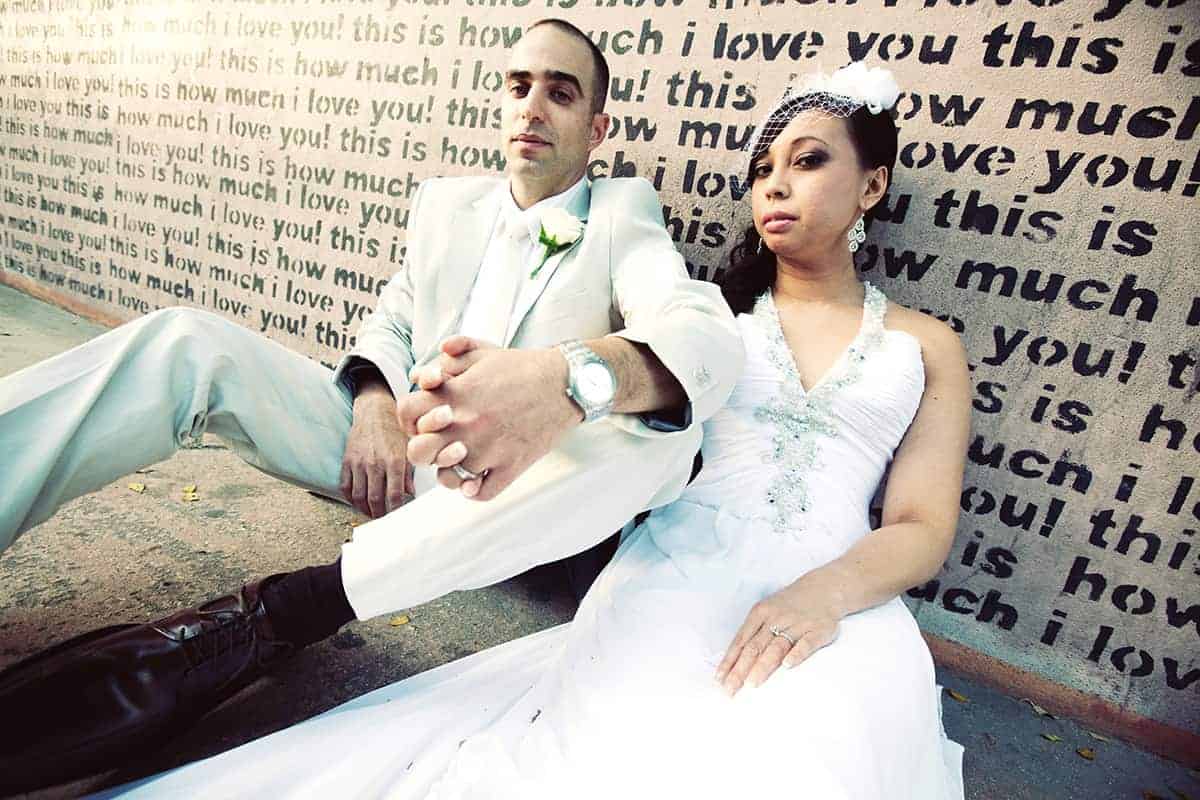 Introduced by a mutual high school friend, Marjorie fell in love with Geoffrey at first sight. At only 19 years old, she knew she would marry him one day. After several years of friendship Geoffrey and Marjorie bumped into one other at a picnic in 2002. Marjorie recalls feeling “so over” Geoffrey because he never before showed an interest in her. Geoffrey asked Marjorie out on a date and the couple dated for four years before buying a house together in 2006. Geoffrey proposed in 2009.