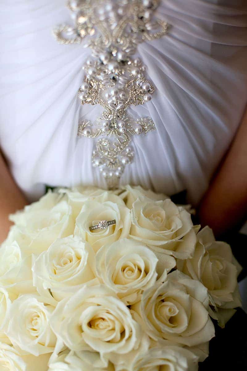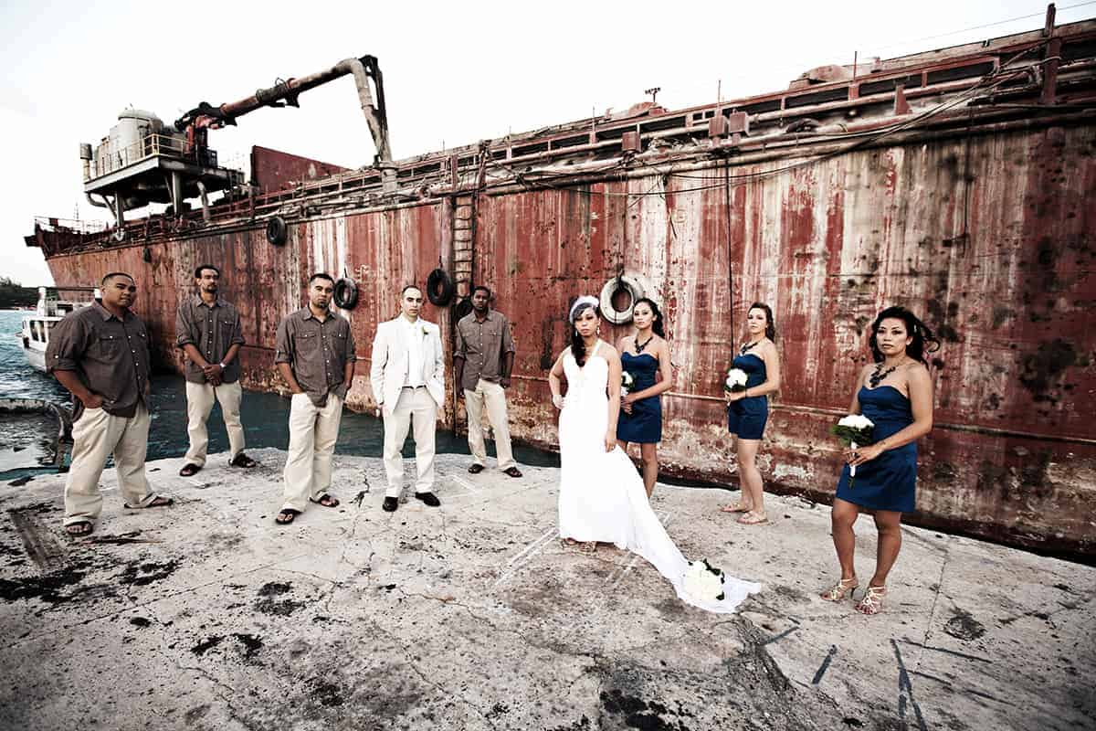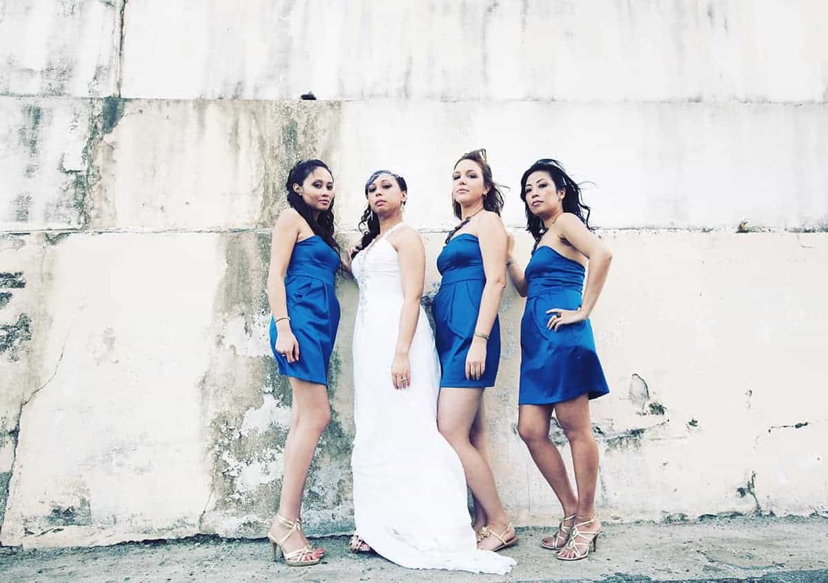 The ceremony was held on an outside terrace that overlooked the ocean with waves crashing into the shore. Two days after the ceremony, the couple along with the bridal party, participated in a “Trash the Dress” photo shoot throughout Paradise Island & Nassau. The memorable event ended with everyone jumping into the Riu Palace pool in their wedding gear. “It was the jump heard around the island.” Geoffrey says. “The Riu staff admitted they had never seen this done before. It was epic.”