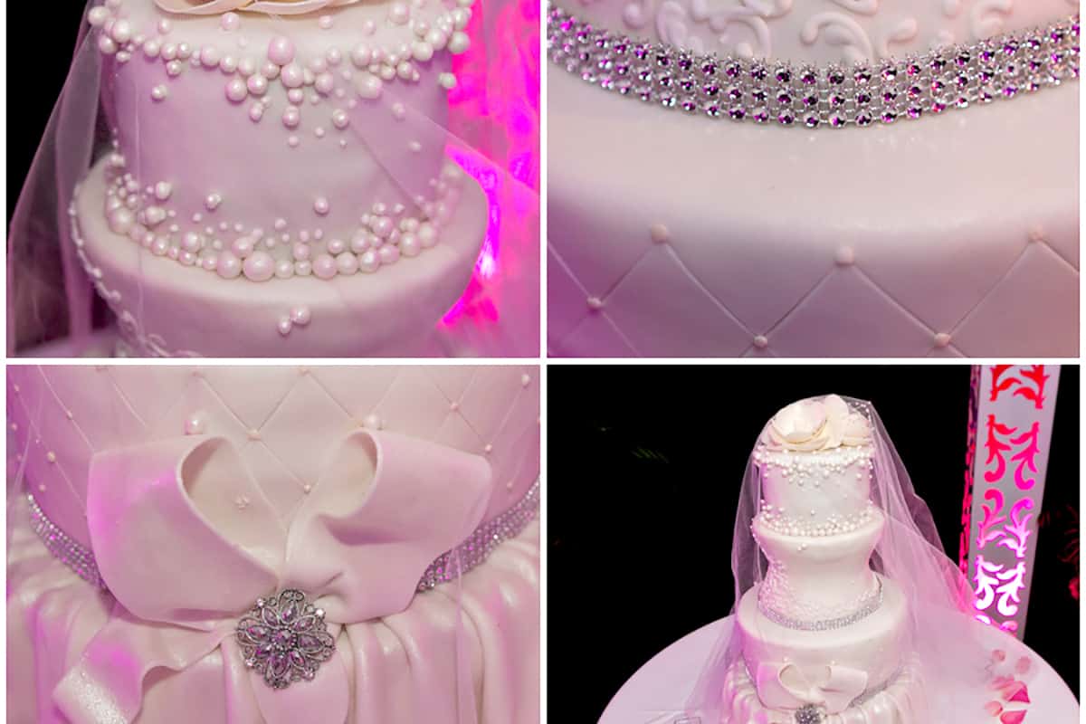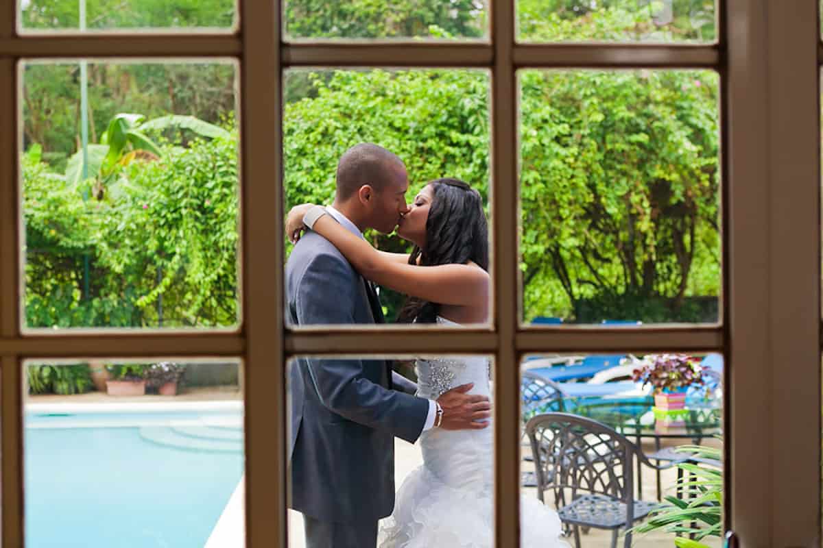The reception followed at the luxurious Cary Island Villas in Ocho Rios. The couple used their reception to incorporate several traditional practices of their multicultural family. They performed an authentic Togolese libation — an African tradition of honouring ancestors. Their Nigerian family members showered them with gifts of money for their future together, while the French family members recited their speeches of heartfelt advice in French. The couple had the luxury of indulging in two scrumptious wedding cakes. The first a four-tier chocolate fudge and raspberry creation by Melissa Holbrooke while the other was created by Mikhailia’s cousin, Paulette Reid, who made a fruit cake which she brought with her from Canada. With cake-cutting duties complete, they partied the night away in true Jamaican style with their guests.