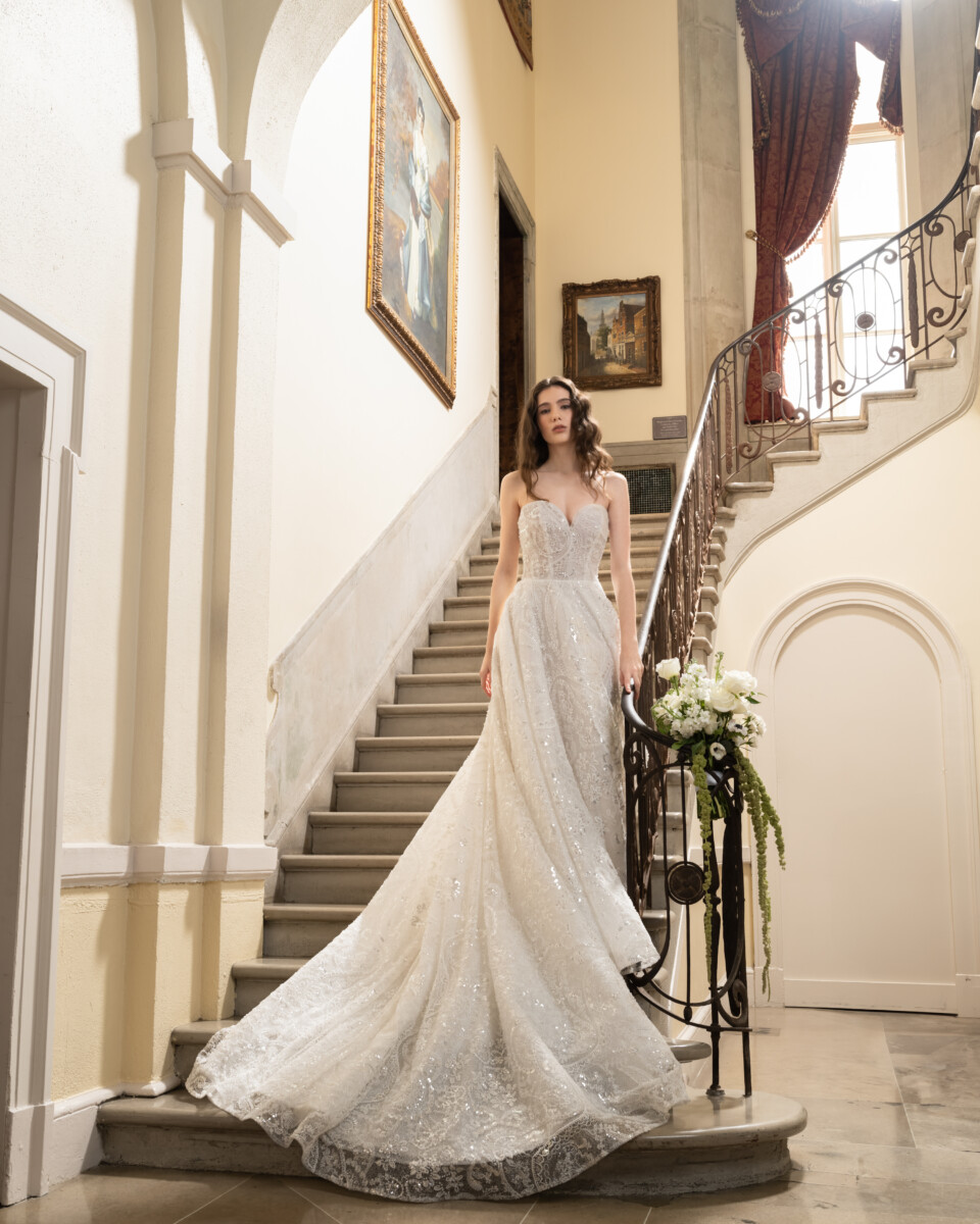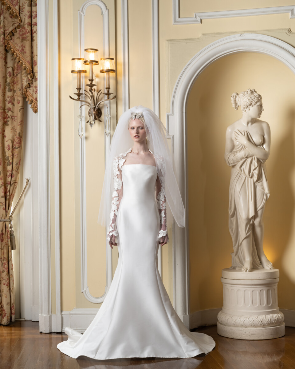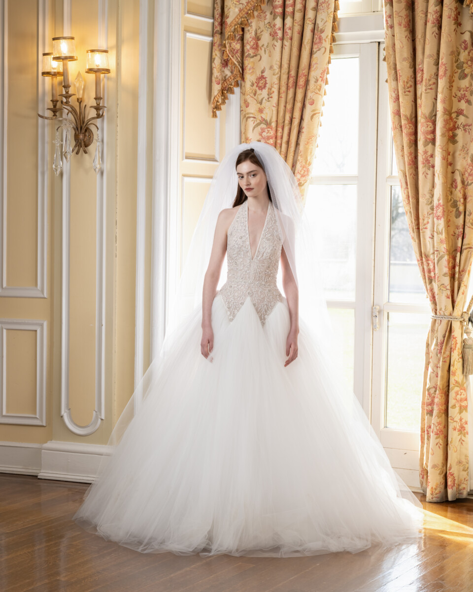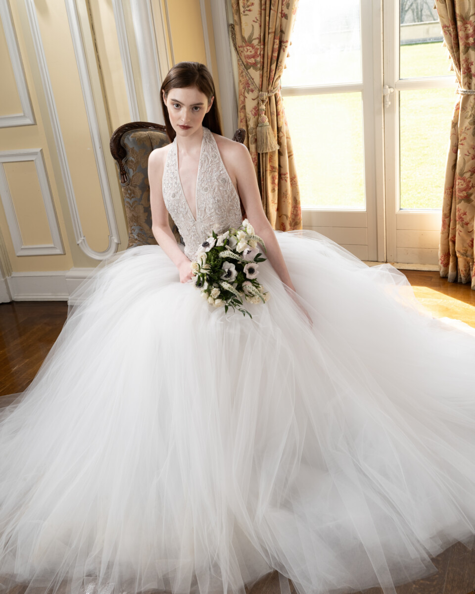 For Spring 2025, the Reem Acra bride is a vision in a blossoming garden. Delicate, rich embroideries, a brand signature, trail down dresses and evaporate like the fragrance of springtime flowers in bloom.